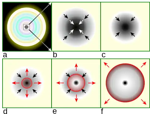 Gravitational collapse is the contraction of an astronomical object due to the influence of its own gravity, which tends to draw matter inward toward the center of gravity.[1] Gravitational collapse is a fundamental mechanism for structure formation in the universe. Over time an initial, relatively smooth distribution of matter, after sufficient accretion, may collapse to form pockets of higher density, such as stars or black holes.