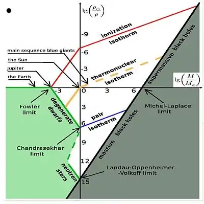 - White dwarfs, in which gravity is opposed by electron degeneracy pressure[4]