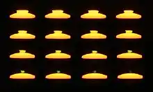 The green flash also may be observed in association with the Moon and bright planets at the horizon, including Venus and Jupiter.[2][3][4] With an unrestricted view of the horizon, green flashes are regularly seen by airline pilots, particularly when flying westwards as the sunset is slowed.[2] If the atmosphere is layered, the green flash may appear as a series of flashes.[2]