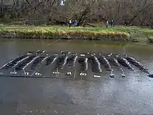 A closed pond loop consists of coils of pipe similar to a slinky loop attached to a frame and located at the bottom of an appropriately sized pond or water source. Artificial ponds are used as heat storage (up to 90% efficient) in some central solar heating plants, which later extract the heat (similar to ground storage) via a large heat pump to supply district heating.[19][20]