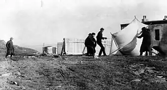 Marconi made the first demonstration of his system for the British government in July 1896.[39] A further series of demonstrations for the British followed, and, by March 1897, Marconi had transmitted Morse code signals over a distance of about 6 kilometres (3.7 mi) across Salisbury Plain. On 13 May 1897, Marconi sent the first ever wireless communication over open sea – a message was transmitted over the Bristol Channel from Flat Holm Island to Lavernock Point near Cardiff, a distance of 6 kilometres (3.7 mi). The message read "Are you ready".[40] The transmitting equipment was almost immediately relocated to Brean Down Fort on the Somerset coast, stretching the range to 16 kilometres (9.9 mi).