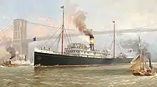 In the autumn of 1899, his first demonstration in the United States took place. Marconi had sailed to the U.S. at the invitation of The New York Herald newspaper to cover the America's Cup international yacht races off Sandy Hook, New Jersey. The transmission was done aboard the SS Ponce, a passenger ship of the Porto Rico Line.[47] Marconi left for England on 8 November 1899 on the American Line's SS Saint Paul, and he and his assistants installed wireless equipment aboard during the voyage. Before this voyage the Second Boer War had begun, and Marconi's wireless was to bring news of the conflict to passengers at the request of "some of the officials of the American line."[48] On 15 November the SS Saint Paul became the first ocean liner to report her imminent return to Great Britain by wireless when Marconi's Royal Needles Hotel radio station contacted her 66 nautical miles off the English coast. The first Transatlantic Times, a newspaper containing wireless transmission news from the Needles Station at the Isle of Wight, was published on board the SS Saint Paul before its arrival.[49]