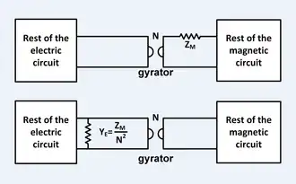 A winding of N turns is modeled by a gyrator with a gyration resistance of N ohms.[1]: 100