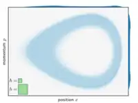 We let qi and pi be our generalized canonical coordinates for a set of particles. Then we consider a function that returns the probability density of particles, over the states in phase space. Note how this can be multiplied by a small region in phase space, denoted by , to yield the (average) expected number of particles in that region.