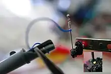 In some later experiments with cat's whisker detectors using a variety of substances, he passed current through them and noticed that some gave off light – the first known report of the effect of the light-emitting diode (LED).[1][2] Round published his result in 1907 in Electrical World:[3]