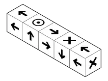 The rotating pattern of permanent magnets (on the front face; on the left, up, right, down) can be continued indefinitely and have the same effect. The effect of this arrangement is roughly similar to many horseshoe magnets placed adjacent to each other, with similar poles touching.
