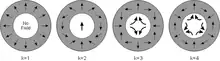 A Halbach cylinder is a magnetized cylinder composed of ferromagnetic material producing (in the idealized case) an intense magnetic field confined entirely within the cylinder, with zero field outside. The cylinders can also be magnetized such that the magnetic field is entirely outside the cylinder, with zero field inside. Several magnetization distributions are shown in the figures.