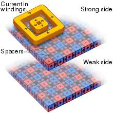 • There is no stray field produced (in the ideal case) on the opposite side. This helps with field confinement, usually a problem in the design of magnetic structures.