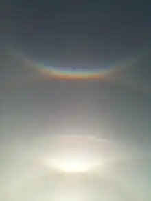 - Circumzenithal arc – Optical phenomenon arising from refraction of sunlight through ice crystals