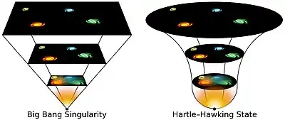 According to the Hartle–Hawking proposal, the universe has no origin as we would understand it: before the Big Bang, which happened about 13.8 billion years ago, the universe was a singularity in both space and time. Hartle and Hawking suggest that if we could travel backwards in time towards the beginning of the universe, we would note that quite near what might have been the beginning, time gives way to space so that there is only space and no time.[4]