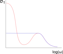 The frequency-dependent conductivity of heavy-fermion materials can be expressed by , containing the effective mass and the renormalized relaxation rate .[8] Due to the large effective mass, the renormalized relaxation time is also enhanced, leading to a narrow Drude roll-off at very low frequencies compared to normal metals.[8][9] The lowest such Drude relaxation rate observed in heavy fermions so far, in the low GHz range, was found in UPd2Al3.[10]