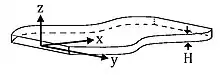Let , be the directions parallel to the flat plates, and the perpendicular direction, with being the gap between the plates (at ) and be the relevant characteristic length scale in the -directions. Under the limits mentioned above, the incompressible Navier–Stokes equations, in the first approximation becomes[6]