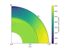 - a convective envelope in which the rotation rate varies both with depth and latitude; and