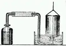Although others, such as Robert Boyle, had prepared hydrogen gas earlier, Cavendish is usually given the credit for recognising its elemental nature. In 1777, Cavendish discovered that air exhaled by mammals is converted to "fixed air" (carbon dioxide), not "phlogisticated air" as predicted by Joseph Priestley.[7] Also, by dissolving alkalis in acids, Cavendish produced carbon dioxide, which he collected, along with other gases, in bottles inverted over water or mercury. He then measured their solubility in water and their specific gravity, and noted their combustibility. He concluded in his 1778 paper "General Considerations on Acids" that respirable air constitutes acidity.[7] Cavendish was awarded the Royal Society's Copley Medal for this paper. Gas chemistry was of increasing importance in the latter half of the 18th century, and became crucial for Frenchman Antoine-Laurent Lavoisier's reform of chemistry, generally known as the chemical revolution.