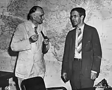 In 1953 Smyth and John A. Hall served as principal advisors to President Dwight Eisenhower in preparing his Atoms for Peace speech to the United Nations.[49] The IAEA traces its origins to this speech.[50][51]