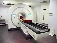 Even devices that use alternating magnetic fields in the radiofrequency range, such as magnetic resonance imaging (MRI), do not use ionizing radiation. MRI was developed as an imaging technique in 1973 by Paul Christian Lauterbur (1929-2007) with significant contributions from Sir Peter Mansfield (1933-2017).[40] Jewelry or piercings can become very hot; on the other hand, a high tensile force is exerted on the jewelry, which in the worst case can cause it to be torn out. To avoid pain and injury, jewelry containing ferromagnetic metals should be removed beforehand. Pacemakers, defibrillator systems, and large tattoos in the examination area that contain metallic color pigments may heat up or cause second-degree burns or malfunction of the implants.[41][42]