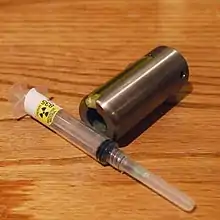 Following Rollins' discovery in 1920 that lead aprons protected against X-rays, lead aprons with a lead thickness of 0.5 mm were introduced. Due to their weight, lead-free and lead-reduced aprons were subsequently developed. In 2005, it was recognized that in some cases the protection was significantly less than wearing lead aprons.[46] The lead-free aprons contain tin, antimony and barium, which have the property of producing intense radiation (X-ray fluorescence radiation) when irradiated. In Germany, the Radiology Standards Committee has taken up the issue and introduced a German standard (DIN 6857-1) in 2009. The international standard IEC 61331-3:2014 was finally published in 2014. Protective aprons that do not comply with DIN 6857-1 of 2009 or the new IEC 61331-1[47] of 2014 may result in higher exposures. There are two classes of lead equivalency classes: 0.25 mm and 0.35 mm. The manufacturer must specify the area weight in kg/m² at which the protective effect of a pure lead apron of 0.25 or 0.35 mm Pb is achieved. The protective effect of an apron shall be appropriate to the energy range used, up to 110 kV for low energy aprons and up to 150 kV for high energy aprons.[48]