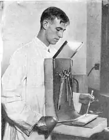 The discovery of X-rays by Wilhelm Conrad Röntgen (1845-1923) in 1895 led to extensive experimentation by scientists, physicians, and inventors. The first X-ray machines produced extremely unfavorable radiation spectra for imaging with extremely high skin doses.[5] In February 1896, John Daniel and William Lofland Dudley (1859–1914) of Vanderbilt University conducted an experiment in which Dudley's head was X-rayed, resulting in hair loss. Herbert D. Hawks, a graduate of Columbia University, suffered severe burns on his hands and chest during demonstration experiments with X-rays.[6][7] Burns and hair loss were reported in scientific journals. Nikola Tesla (1856–1943) was one of the first researchers to explicitly warn of the potential dangers of X-rays in the Electrical Review on May 5, 1897 - after initially claiming them to be completely harmless. He suffered massive radiation damage after his experiments.[8] Nevertheless, some doctors at the time still claimed that X-rays had no effect on humans.[9] Until the 1940s, X-ray machines were operated without any protective safeguards.[9]