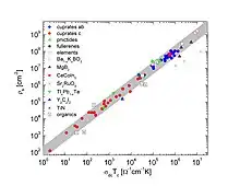 The law is named for physicist Christopher Homes and was first presented in the July 29, 2004 edition of Nature,[1] and was the subject of a News and Views article by Jan Zaanen in the same issue[2] in which he speculated that the high transition temperatures observed in the cuprate superconductors are because the metallic states in these materials are as viscous as permitted by the laws of quantum physics. A more detailed version of this scaling relation subsequently appeared in Physical Review B in 2005,[3] in which it was argued that any material that falls on the scaling line is likely in the dirty limit (superconducting coherence length ξ0 is much greater than the normal-state mean-free path l, ξ0≫ l); however, a paper by Vladimir Kogan in Physical Review B in 2013 has shown that the scaling relation is valid even when ξ0~ l,[4] suggesting that only materials in the clean limit (ξ0≪ l) will fall off of this scaling line.