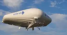A Canadian start-up, Solar Ship, Inc., is developing solar powered hybrid airships that can run on solar power alone. The idea is to create a viable platform that can travel anywhere in the world delivering cold medical supplies and other necessitates to locations in Africa and Northern Canada without needing any kind of fuel or infrastructure. The hope is that technology developments in solar cells and the large surface area provided by the hybrid airship are enough to make a practical solar powered aircraft. Some key features of the Solarship are that it can fly on aerodynamic lift alone without any lifting gas, and the solar cells along with the large volume of the envelope allow the hybrid airship to be reconfigured into a mobile shelter that can recharge batteries and other equipment.[23]