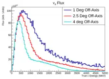 - The average energy of neutrinos decreases with the deviation from the beam axis.