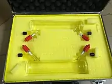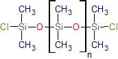 While several coatings have been tested over the years, SurfaSil (Figure 6, now referred to as hydrocarbon soluble siliconizing fluid) is the most common coating used in a ratio of 1:10 SurfaSil: hexane because it provides long T1 values.[19] The thickness of the SurfaSil layer is about 0.3-0.4 μm.[19] Once evenly coated and dried, the cell is then placed in an inert environment and a droplet of alkali metal (≈200 mg) is placed in the cell, which is then dispersed to create an even coating on the walls of the cells. One method for transferring the alkali metal into the cell is by distillation.[20] In the distillation method, the cell is connected to a glass manifold equipped to hold both pressurized gas and vacuum, where an ampoule of alkali metal is connected.[21] The manifold and cell are vacuumed, then the ampoule seal is broken and the alkali metal is moved into the cell using the flame of a gas torch.[21] The cell is then filled with the desired gas mixture of nitrogen and noble gas.[5] Care must be taken not to poison the cell at any stage of cell preparation (expose the cell to atmospheric air).