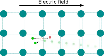 Impact ionization is the process in a material by which one energetic charge carrier can lose energy by the creation of other charge carriers. For example, in semiconductors, an electron (or hole) with enough kinetic energy can knock a bound electron out of its bound state (in the valence band) and promote it to a state in the conduction band, creating an electron-hole pair. For carriers to have sufficient kinetic energy a sufficiently large electric field must be applied,[1] in essence requiring a sufficiently large voltage but not necessarily a large current.