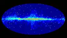 Indirect detection of dark matter is a method of searching for dark matter that focuses on looking for the products of dark matter interactions (particularly Standard Model particles) rather than the dark matter itself.[1] Contrastingly, direct detection of dark matter looks for interactions of dark matter directly with atoms.[2] There are experiments aiming to produce dark matter particles using colliders.[2] Indirect searches use various methods to detect the expected annihilation cross sections for weakly interacting massive particles (WIMPs).[3] It is generally assumed that dark matter is stable (or has a lifetime long enough to appear stable), that dark matter interacts with Standard Model particles, that there is no production of dark matter post-freeze-out, and that the universe is currently matter-dominated, while the early universe was radiation-dominated.[2] Searches for the products of dark matter interactions are profitable because there is an extensive amount of dark matter present in the universe, and presumably, a lot of dark matter interactions and products of those interactions (which are the focus of indirect detection searches); and many currently operational telescopes can be used to search for these products.[1] Indirect searches help to constrain the annihilation cross section the lifetime of dark matter , as well as the annihilation rate.