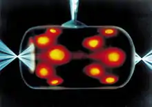 In spite of limited resources and business problems, KMS Fusion successfully demonstrated IFC fusion on 1 May 1974.[36] This success was soon followed by Siegel's death and the end of KMS Fusion a year later.[33] By this point several weapons labs and universities had started their own programs, notably the solid-state lasers (Nd:glass lasers) at LLNL and the University of Rochester, and krypton fluoride excimer lasers systems at Los Alamos and the Naval Research Laboratory.