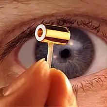 Another outcome of Atoms For Peace was to prompt John Nuckolls to consider what happens on the fusion side of the bomb as fuel mass is reduced. This work suggested that at sizes on the order of milligrams, little energy would be needed to ignite the fuel, much less than a fission primary.[6] He proposed building, in effect, tiny all-fusion explosives using a tiny drop of D-T fuel suspended in the center of a hohlraum. The shell provided the same effect as the bomb casing in an H-bomb, trapping x-rays inside to irradiate the fuel. The main difference is that the X-rays would be supplied by an external device that heated the shell from the outside until it was glowing in the x-ray region. The power would be delivered by a then-unidentified pulsed power source he referred to, using bomb terminology, as the "primary".[22]