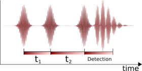 Pulse Sequence used to obtain a two-dimensional Fourier transform infrared spectrum. The time period is usually referred to as the coherence time and the second time period is known as the waiting time. The excitation frequency is obtained by Fourier transforming along the axis.