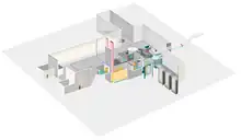 The design uses a replaceable core-unit.[11] When the graphite moderator's lifetime exposure to neutron flux causes it to start distorting beyond acceptable limits, rather than remove and replace the graphite moderator, the entire IMSR Core-unit is replaced as a unit. This includes the pumps, pump motors, shutdown rods, heat exchangers and graphite moderator, all of which are either inside the vessel or directly attached to it. To facilitate a replacement, the design employs two reactor silos in the reactor building, one operating and one idle or with a previous, empty, spent Core-unit in cool-down. After 7 years of operation, the core-unit is shut down and cools in place to allow short-lived radionuclides to decay. After that cool-down period, the spent core-unit is lifted out and eventually replaced.