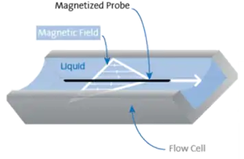 The commercialized measurement techniques for interfacial shear rheology include magnetic needle method, rotating ring method and rotating bicone method.[6] The magnetic needle method, developed by Brooks et al[7]., has the highest Boussinesq number of the commercialized methods. In this method, a thin magnetic needle is oscillated at the interface using a magnetic field. By following the movement of the needle with a camera, the viscoelastic properties of the interface can be detected. This method is often used in combination with a Langmuir trough in order to be able to conduct the experiment as a function of the packing density of the molecules or particles.
