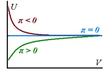 corresponding to the fact that all real gases can be approximated to be perfect in the limit of a suitably large volume. The above considerations are summarized on the graph on the right.