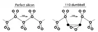 In semiconductors the situation is more complex, since defects may be charged and different charge states may have different structures. For instance, in silicon, the interstitial may either have a split [110] structure or a tetrahedral truly interstitial one.[5]