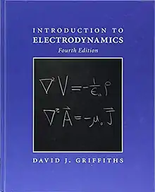 Introduction to Electrodynamics is a textbook by physicist David J. Griffiths. Generally regarded as a standard undergraduate text on the subject,[1] it began as lecture notes that have been perfected over time.[2] Its most recent edition, the fifth, was published in 2024 by Cambridge University.[3] This book uses SI units (the mks convention) exclusively. A table for converting between SI and Gaussian units is given in Appendix C.[4]