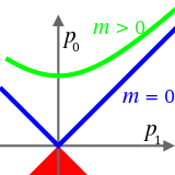 The invariant mass, rest mass, intrinsic mass, proper mass, or in the case of bound systems simply mass, is the portion of the total mass of an object or system of objects that is independent of the overall motion of the system. More precisely, it is a characteristic of the system's total energy and momentum that is the same in all frames of reference related by Lorentz transformations.[1] If a center-of-momentum frame exists for the system, then the invariant mass of a system is equal to its total mass in that "rest frame". In other reference frames, where the system's momentum is nonzero, the total mass (a.k.a. relativistic mass) of the system is greater than the invariant mass, but the invariant mass remains unchanged.