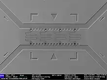 Focused ion beam (FIB) instruments have numerous applications for characterization of thin-film devices. Using a focused, high-brightness ion beam in a scanned raster pattern, material is removed (sputtered) in precise rectilinear patterns revealing a two-dimensional, or stratigraphic profile of a solid material. The most common application is to verify the integrity of the gate oxide layer in a CMOS transistor. A single excavation site exposes a cross section for analysis using a scanning electron microscope. Dual excavations on either side of a thin lamella bridge are utilized for preparing transmission electron microscope samples.[2]