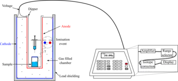 The ionization chamber is the simplest type of gaseous ionisation detector, and is widely used for the detection and measurement of many types of ionizing radiation, including X-rays, gamma rays, alpha particles and beta particles. Conventionally, the term "ionization chamber" refers exclusively to those detectors which collect all the charges created by direct ionization within the gas through the application of an electric field.[1] It uses the discrete charges created by each interaction between the incident radiation and the gas to produce an output in the form of a small direct current. This means individual ionising events cannot be measured, so the energy of different types of radiation cannot be differentiated, but it gives a very good measurement of overall ionising effect.