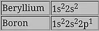 - Moving from the s-block to the p-block: a p-orbital loses an electron more easily. An example is beryllium to boron, with electron configuration 1s2 2s2 2p1. The 2s electrons shield the higher-energy 2p electron from the nucleus, making it slightly easier to remove. This also happens from magnesium to aluminium.[19]