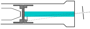 To avoid the issues associated with observing the beam at right angles, Ives and Stilwell used a small mirror within the canal ray tube (See Fig. 1 and Fig. 3) to observe the beam simultaneously in two directions both with and against the motions of the particles. The TDE would manifest itself as a shift of the center of gravity of the simultaneously red- and blue-shifted spectral lines.[1]