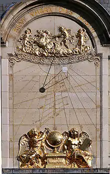 Picard also developed what became the standard method for measuring the right ascension of a celestial object.[6][7] In this method, the observer records the time at which the object crosses the observer's meridian. Picard made his observations using the precision pendulum clock that Dutch physicist Christiaan Huygens had recently developed.