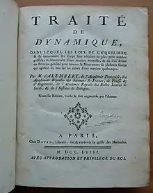 - D'Alembert, Jean Le Rond (1743). Traité de dynamique (2nd ed.). Gabay (1990 reprint).