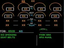 Engine pressure ratio (EPR), low-pressure compressor speed (N1) and exhaust gas temperature (EGT)