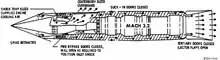 Pratt & Whitney J58 Bleed required from the compressor, pr 9:1. 4th stage bleed doors required for engine starting and venting to the nacelle are visible immediately forward of the top bleed tube. 3 of 6 tubes for 4th stage bypass bleed to the afterburner required at low corrected speeds caused by high Mach ram temperature.[62]