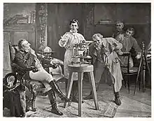 It was at the Institute that Fraunhofer met Pierre-Louis Guinand (de), a Swiss glass technician, who instructed Fraunhofer in glassmaking at Utzschneider's behest.[8] By 1809, the mechanical part of the Optical Institute was chiefly under Fraunhofer's direction, and Fraunhofer became one of the members of the firm that same year.[9] In 1814, Guinand left the firm, as did Reichenbach. Guinand would later become a partner with Fraunhofer in the firm,[8] and the name was changed to Utzschneider-und-Fraunhofer. During 1818, Fraunhofer became the director of the Optical Institute. Due to the fine optical instruments developed by Fraunhofer, Bavaria overtook England as the center of the optics industry. Even the likes of Michael Faraday were unable to produce glass that could rival Fraunhofer.[5][6]