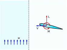 Küssner derived an approximate model for an airfoil encountering a sudden step-like change in the transverse gust velocity; or, equivalently, as seen from a frame of reference moving with the airfoil: a sudden change in the angle of attack. The airfoil is modelled as a flat plate in a potential flow, moving with constant horizontal velocity.[2] For this case he derived the impulse response function (known as Küssner function[3]) needed to compute the unsteady lift and moment exerted by the air on the airfoil.