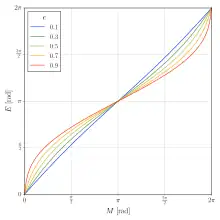 where is the mean anomaly, is the eccentric anomaly, and is the eccentricity.