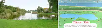 Kolks were first identified by the Dutch, who observed kolks hoisting several-ton blocks of riprap from dikes and transporting them away, suspended above the bottom.[1] The Larrelt kolk near Emden appeared during the 1717 Christmas flood which broke through a long section of the dyke. The newly formed body of water measured roughly 500 × 100 m and was 25 m deep. In spite of the repair to the dyke, another breach occurred in 1721, which produced more kolks between 15 and 18 m deep. In 1825 during the February flood near Emden, a kolk of 31 m depth was created. The soil was saturated from here for a further 5 km inland.