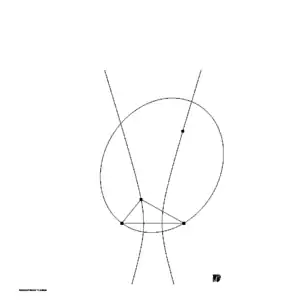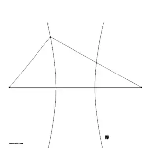 The points , and define a hyperbola going through the point with foci at the points and . The point is either on the left or on the right branch of the hyperbola depending on the sign of . The semi-major axis of this hyperbola is and the eccentricity is . This hyperbola is illustrated in figure 2.